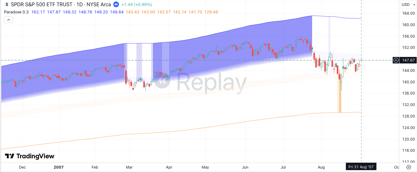 Ровно через два дня после того, как Bear Stearns публично советовал не паниковать, BNP Paribas заблокировал вывод средств из трёх своих хедж-фондов с активами на $2,2 млрд. Причина: «полное испарение ликвидности» — активы стало невозможно оценить.