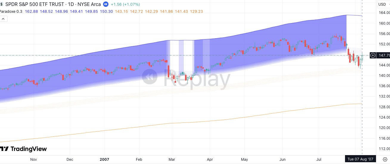 Ровно через два дня после того, как Bear Stearns публично советовал не паниковать, BNP Paribas заблокировал вывод средств из трёх своих хедж-фондов с активами на $2,2 млрд. Причина: «полное испарение ликвидности» — активы стало невозможно оценить.