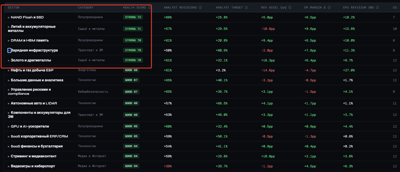 Скоро мы сможем отслеживать данные в динамике и получать анализ секторов гораздо раньше, чем они начнут взлетать. Нужно подождать несколько недель, пока данные накопятся.